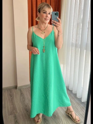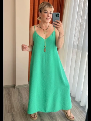 BEJ KAHVE KETEN ASİMETRİK ELBİSE