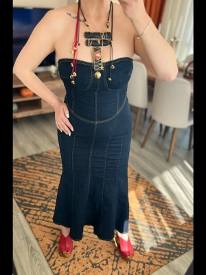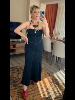 GECE MAVİSİ KETEN ASİMETRİK ELBİSE