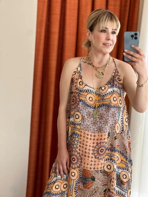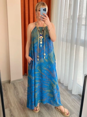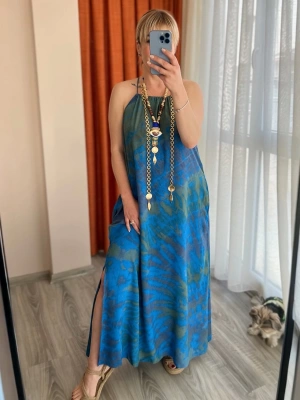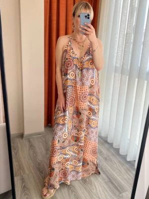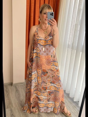 Etnik Desenli Askılı Elbise – Organik Viskon