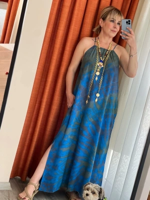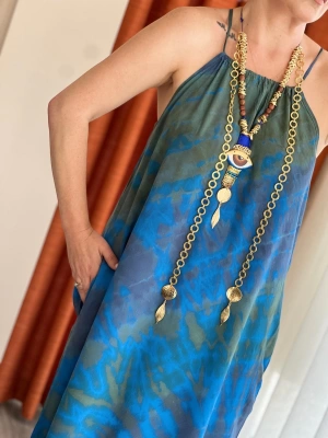 Lacivert Mandala Askılı Elbise – Organik Viskon