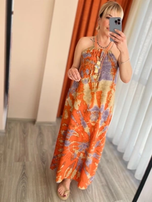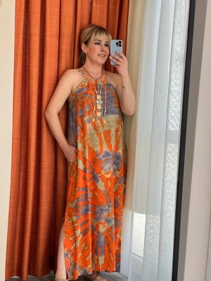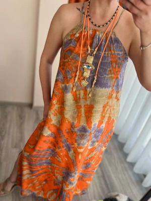Turuncu Batik Halter Elbise – Organik Pamuk