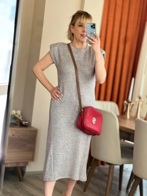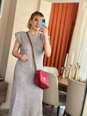 KİREMİT RENGİ KETEN ASİMETRİK ELBİSE