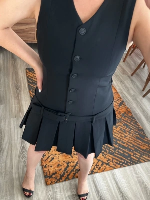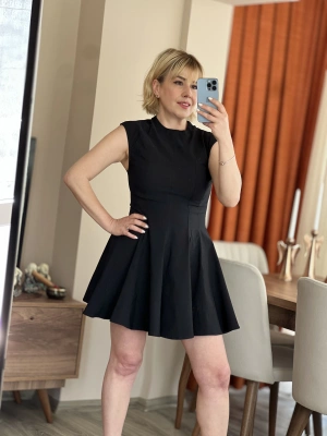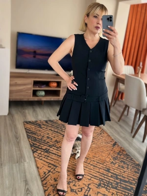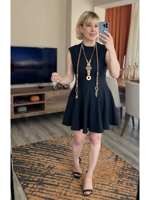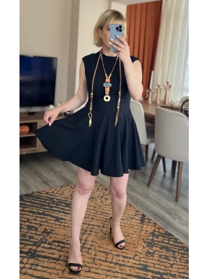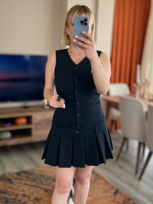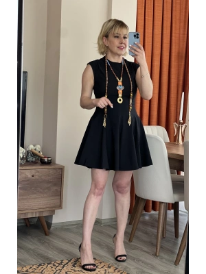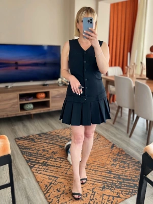 Siyah Önden Düğmeli, Dokuma Kumaş Astarlı Elbise