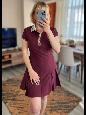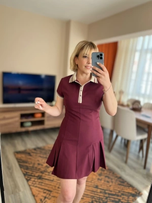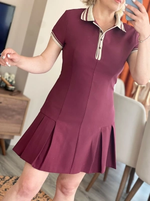 Bordo Dokuma Kumaş Polo Yaka Elbise